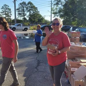 On food distribution Saturdays, the day begins early! It actually begins on Thursday night when the church fellowship hall is used to sort the food donations. By 6:30 Saturday morning, volunteers are setting up stations in the parking lot with different food groups (dairy, meat, breads / baked goods, fruits and vegetables, canned goods, etc.). Recipients drive through the parking lot with volunteers loading the cars with food bags and boxes. Volunteers from the foundation, the church, and the wider community provide support with picking up food donations, sorting, and distributing the food, clothes, and other items. Love and prayers are bountiful! By the end of the morning, all the food is distributed, and the fellowship hall is prepared for Sunday morning. The photos below are just a few of the many volunteers that joyfully serve on Saturday.